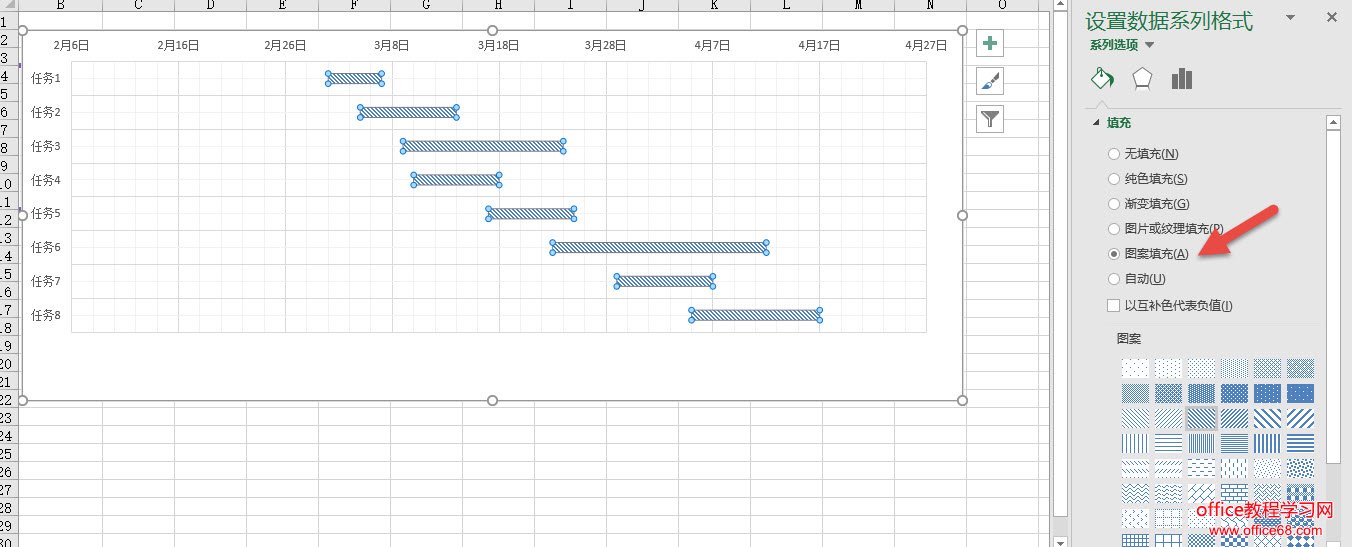 也可以利用填充图案功能,设置成类似 Project这样的效果。