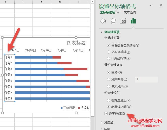 设置完毕后,效果如下,你会发现任务的顺序是反的。这样就需要对条形图的任务顺序做翻转?