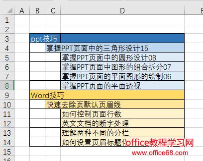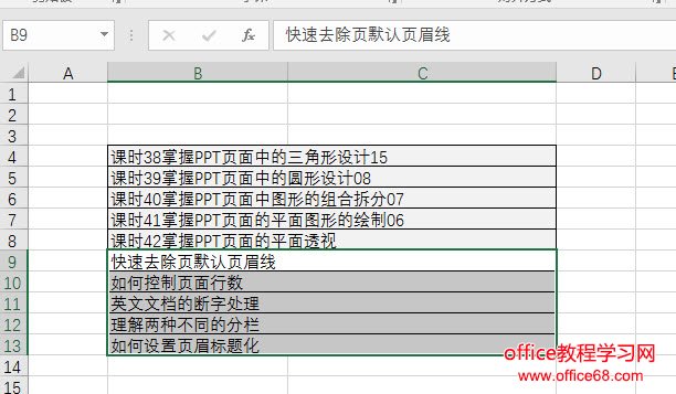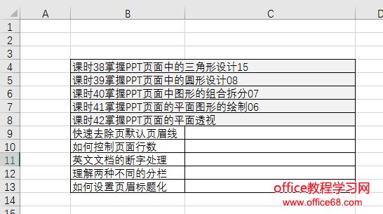 下图中B4:C8区域为每行两列合并在一起的单元格。B9:C13则是每行两列的单元格。