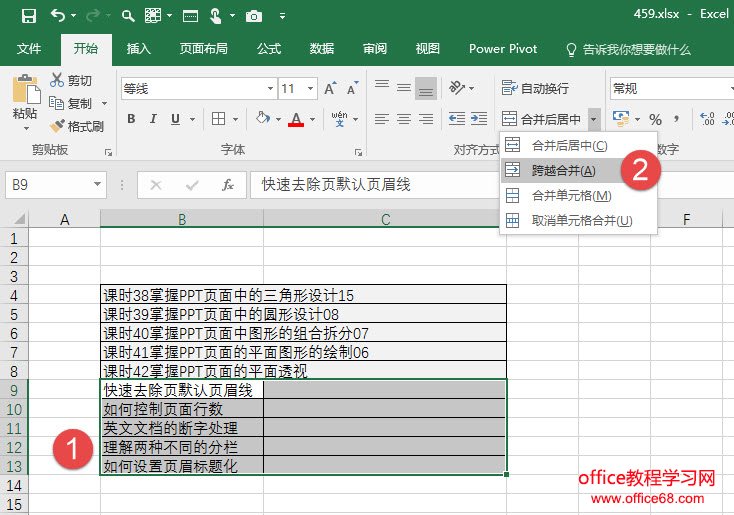 总结:跨越合并是Excel2007以上版本的新功能,非常适合这种横向快速合并的单元格操作。光看不练假把式,赶紧学起来吧。