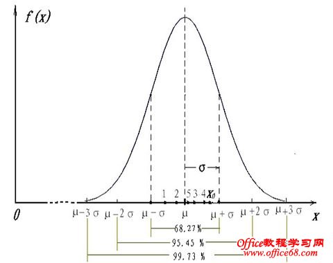 如果需要原理曲线,也可以把上图中的正态曲线复制下来,再在Word画图程序中改画。下图就是我用这种方法画的正态分布曲线原理图。