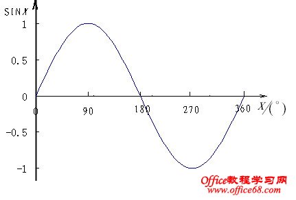 但是,得到的曲线横坐标的角度不是按0、90、180……标注的,而且没有坐标和相应的角度和函数符号。这时可以把曲线复制到Word的画图程序,根据需要予以完善,下图就是我修改后的结果。