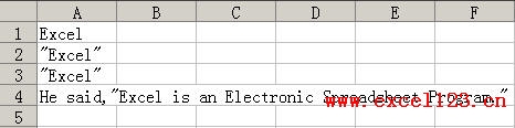 在VBA中,赋予变量或属性的字符串都是用引号 “" "”括起来的。如果字符串中要包含英文双引号,可以在代码中将输出时包含引号的文本用两对双引号括起来,然后再将整个字符串用引号括起来。例如下面的代码: Range("A2") = """Excel""" 将在A2单元格中输入出带引号的“"Excel"”。 也可以使用引号的ASCII 字符(34) : Range("A3") = Chr(34) & "Excel" & Chr(34) 下面一段代码的输出结果如图。 Sub test() |