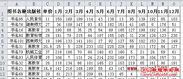 Excel中的合并计算可以对多个工作表的对应项目进行求和、求平均值等计算,但如果需要合并计算的工作表较多,特别是这些工作表位于不同的工作簿内时,逐一选择数据源显得较为繁琐。用VBA中的Range.Consolidate方法可以快速地对多个结构相似的工作表进行合并计算,但如果表格内包含有非数值类型的数据列,合并计算会忽略这些列。例如下图为某个图书销售点1至12月的图书销售记录,销售数量位于D至O列,其中B列和C列为与A列对应的数据,无需参与合并计算,但必须在汇总表中列出。各销售点都有一个类似的销售表格,每个分表列出的图书数量不等,图书名称也不尽相同。现在需要对各销售点的销售表格中D至O列的销售数量按照A列图书名称进行合计,求出总的销售数量。