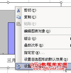 如果对象为图表,可以按住Shift键,单击图表,这时图表的四周会出现白色的句柄,然后右击图表,在弹出的快捷菜单中选择“设置对象格式”。也可以直接在图表绘图区上右击,此时图表四周出现黑色的句柄,右击图表,在弹出的快捷菜单中选择“绘图区格式”。
