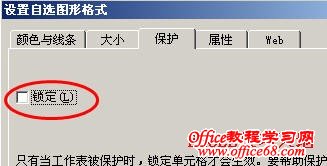 2.在弹出的“设置自选图形格式”或“设置对象格式”对话框中,选择“保护”选项卡,然后取消选择“锁定”。单击“确定”按钮。