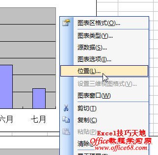 2.移动图表。在“Sheet1”表中选择某个图表,鼠标在图表的绘图区(Excel 2007中为“图表区”)中右击,在弹出的快捷菜单中选择“位置”。