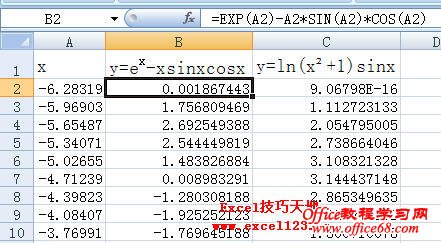 =EXP(A2)-A2*SIN(A2)*COS(A2)