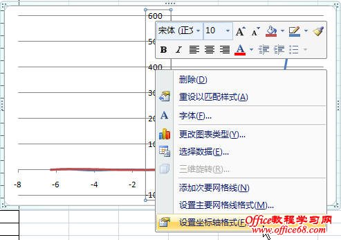 鼠标在垂直(值)轴上右击,在弹出的快捷菜单中选择“设置坐标轴格式”。