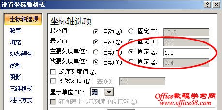 同样,将水平(值)轴中的“主要刻度单位”设置为“固定”,数值为“1.0”。