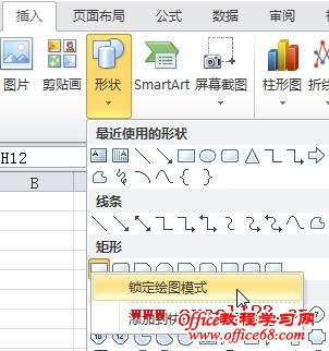 有时需要在Excel中绘制多个相同的图形对象,如果要绘制的图形大小、颜色都一致,可以先绘制一个图形,然后按住Ctrl键,用单击并拖动图形对象的方法来进行复制。如果需要连续绘制同一类型的图形,可以用下面的方法。 Excel 2003: 例如要连续绘制多个矩形形状,步骤如下: 1.在“绘图”工具栏中单击“自选图形→基本形状”,这时会弹出一个包含各种常用图形的二级菜单,将鼠标指针放到菜单顶部,当鼠标指针变成白色的四向箭头状时,按住鼠标左键将其拖动到其他位置,使其成为一个单独的浮动的“基本形状”工具栏 2.在“基本形状”工具栏中,双击“矩形”,就可以在工作表中连续绘制多个矩形形状。 图形绘制完毕,按ESC键,并关闭“基本形状”工具栏。 Excel 2007/2010: 在功能区中选择“插入”选项卡,在“插图”组中单击“形状”,在弹出的形状样式库中右击“矩形”,选择“锁定绘图模式”。然后就可以在工作表中连续绘制多个矩形。 同样,按ESC键取消绘制。 |