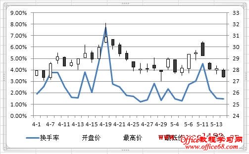 与方法一相比,图表中“换手率”系列被设置在主坐标轴上了