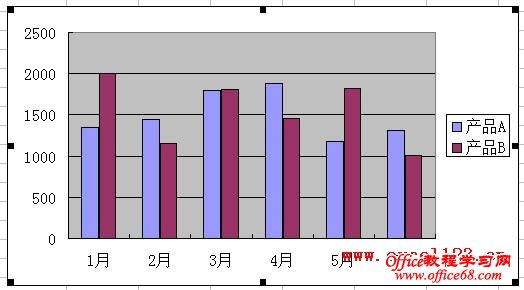 1.选择前两个系列数据所在区域A1:C7,单击菜单“插入→图表→柱形图”,单击“完成”按钮。Excel将插入一个包含前两个系列的柱形图。