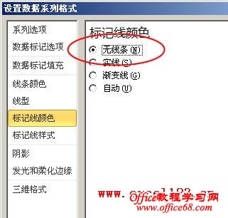 要去掉这个圆形实线,可在保持“苹果”系列被选中的情况下,在上述对话框中选择“标记线颜色”,将“标记线颜色”设置为“无线条”。