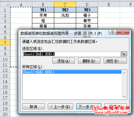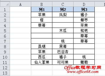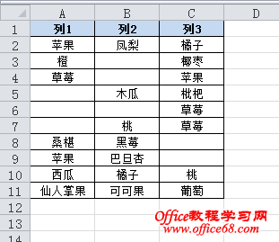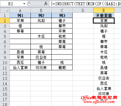 要将一个多行多列区域中不重复的数据提取到一列,即对于重复的数据只提取一次,最直接的做法是先将该区域的数据转到一列中,再利用Excel2007/2010中的删除重复项功能去掉重复值。另外,还可使用数据透视表、数组公式和VBA的方法来提取,本文以Excel 2010为例分别介绍如下假如数据在A1:C11区域,其中还包含一些空单元格,如图所示。 方法一:利用数据透视表 利于数据透视表的多重合并计算功能,将上述数据区域作为数据透视表的多重合并计算数据区域,把“值”字段放到在数据透视表的行区域中,即可得到不重复值。步骤如下: 1.在区域左侧插入空白列。如果原数据区域不是从A列开始,则可跳过此步骤。在本例中,由于原数据区域包含工作表的第一列(A列),需先在该区域的左侧插入一个空白列,作为数据透视表的行字段。 2.选择数据区域中的某个单元格,按Alt+D,再按P键,打开“数据透视表和数据透视图向导”,选择“多重合并计算数据区域”项,单击“下一步”。 3.再次单击“下一步”,在弹出的对话框中选择并添加数据区域。在选择区域时注意要包含原数据区域的左侧列及标题列。本例为包含上述空白列的A1:D11。 单击“下一步”,在弹出的对话框中选择数据透视表存放的位置,单击“完成”按钮。本例将数据透视表放置在当前工作表F3单元格开始的区域中。 4.在数据透视表的字段列表中取消选择所有字段,然后再次勾选“值”字段,或将“值”字段拖入到“行”标签区域中,即可在F列得到原区域中的不重复值。 方法二:使用数组公式 假如数据在A1:C11区域,在E2单元格中输入数组公式: =INDIRECT(TEXT(MIN(IF(($A$2:$C$11<>"")*(COUNTIF($E$1:E1,$A$2:$C$11)=0),ROW($2:$11)*100+COLUMN($A:$C),7^8)),"R0C00"),)&"" 公式输入完毕,按Ctrl+Shift+Enter结束。然后拖动填充柄向下填充公式,直到出现空白为止。 如果区域中的数据全部为数字和空单元格,还可用下面的数组公式: =LARGE(IF($A$2:$C$11="","",$A$2:$C$11),SUM(COUNTIF($A$2:$C$11,$E$1:E1))+1) 方法三:使用VBA 下面的VBA代码利用Dictionary对象中的关键字具有唯一性的特点得到不重复值。使用方法是按Alt+F11打开VBA编辑器,在代码窗口中粘贴下列代码并运行,即可在F列可得到A2:C11区域中的不重复值。 Sub Uniquedata() |