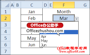 如果在列C中添加另一个月,将自动显示在单元格F2中使用MonthList作为数据源的数据有效性下拉列表中。