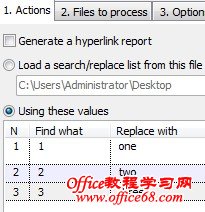 这里除了你可以输入一个个需要替换的内容以后,还可以直接在excel里面编辑好后导入,导入的格式可以查看他的帮助文件。其实一般只需要两列,第一列的内容是”Find what”的内容,第二列是”Replace with”的内容。 这里的话我一般不喜欢从Excel里面编辑好后再导入,而是在这个编辑的地方将需要替换的内容都写好后,点击 option -> Export search/replace list ,将其导出后备份起来,下次需要再替换的时候直接导入就可以了。 接下来便是选择需要替换的Excel文件,这里可以选择很多个。。。进行批量替换。