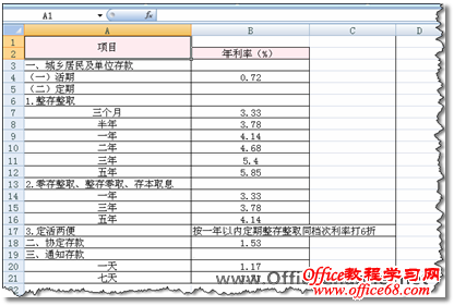 图4 导入工作表中的数据 如果希望每次打开工作簿时自动从网站上自动获取最新的数据,只需在导入的数据区域的任意位置右键单击鼠标右键,在随机打开的快捷菜单中执行【数据区域属性】命令,打开“外部数据区域属性”对话框,选中“刷新控件”选项区域中的“打开文件时刷新数据”复选框,单击【确定】按钮,如图5所示。