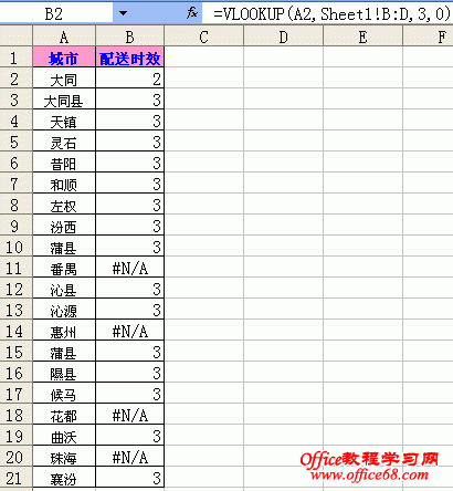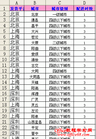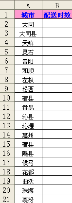分别介绍了Excel查找函数三剑客之Match函数和Index函数的用法。个人觉得,Excel函数虽然博大精深,但只要你真正掌握了Vlookup、Index及Match函数的用法,会对自己的工作效率有极大的提升。因此,这三个函数,我称之为“Excel超找函数三剑客”。这三剑客在物流数据分析和财务分析中有着广阔的用途。 在物流行业,Vlookup函数无疑是老大哥,使用最频繁,用处最大。但很多朋友反馈,在使用Vlookup函数时,老是报错。同时,一些朋友自认为掌握了这一函数的用法,但实际应用中或多或少遇到了不知名的错误,自己也不知道是什么原因。所以今天,我再给大家分享下Vlookup函数的含义和用法。和上两篇博文不同的是,这次就不先展示Vlookup函数的官方解释,因为官方解释实在是太晦涩了,不太容易看懂。 对于Vlookup函数的语法格式,可以这样写:=Vlookup(查找对象,查找区域,列数,查找类别)。需要注意的是:Vlookup函数需要输入四个参数,第二个参数表示在哪个区域查找,注意查找的对象必须在该区域的第一列;第三个参数表示函数最终得出的结果在查找区域中的列数是多少;第四个参数表示精确查找还是模糊查找,0或者False表示精确查找,1或者true表示模糊查找,在物流数据分析中,大部分是精确查找,也就是一般用0或者False。举个例子,第一个截图sheet1为源数据。第二个截图sheet2中有两个字段,要根据sheet1中的城市,精确匹配配送时效。见下图: