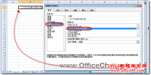 2)在随即打开的“设置单元格格式”对话框的“分类”列表框中选择“日期”,在“类型”列表框中选择所需的日期格式,最后单击【确定】按钮即可,如图3所示。