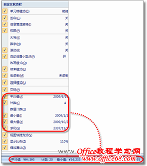 当选择工作表中的数据区域时,是否可以自动显示该区域数值的“最大值”、“最小值”、“平均值”或“求和”呢?在Excel工作簿的状态栏中,用户可以进行自定义设置,从而更直观地显示数据的相关计算值。