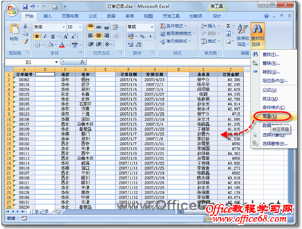 当将一些外部数据导入到Excel中时,可能会存在一些空白列,在对数据进行分析时,不允许数据表格中出现空白列,当数据表格中含有大量不连续的空白列时,如何才能快速将其删除呢?下面就向大家介绍一种完成该操作的简单技巧。如果数据表格中保存的都是一些常量数据,则可以按照如下步骤快速删除表格中的空白列。 (1)打开包含空白列的Excel工作表,选中工作表中的整个数据区域。 (2)在“开始”选项卡的“编辑”选项组中,单击【查找和选择】按钮,在随即打开的下拉列表中执行【常量】命令,即可将数据表格中所有包含常量数据的单元格选中,如图1所示。