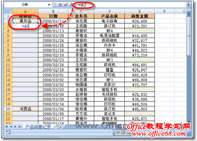 图1 选择所有空白单元格 (4)输入“=”,并按【↑】键,此时就可以在空白单元格中,通过公式来引用位于其上方的数据了,如图2所示。