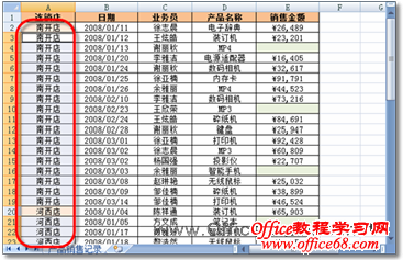 图3 填充空白单元格后的效果 通过上述方法,可以将空白单元格上方的内容填充到空白单元格中,如果希望在所有空白单元格中填充某个相同的内容,则可以使用前面介绍的方法选中所有空白单元格,然后直接在编辑栏中输入数据并按【Ctrl】+【Enter】组合键即可,如图4所示。