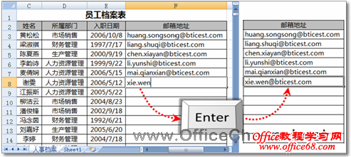 图3 Excel自动将输入的邮箱地址补充完整 |