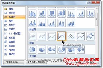 2)在“更改图表类型”对话框中,为当前选中的数据系列选择另外一种图表类型,如图2所示。