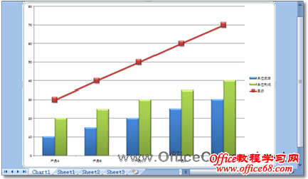 3)单击【确定】按钮,选定的数据系列将独自改变为所选的图表类型,如图3所示。