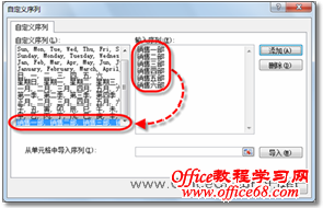 图2 打开“自定义序列”对话框 (3)在对话框的“输入序列”列表框中,按需要的排列顺序输入部门名称,然后单击【添加】按钮,即可创建该自定义序列,如图3所示。