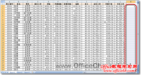 根据工资总表,为每一个员工制作工资条,是财会人员的日常工作之一,然而,如果使用的方法不当,完成这项工作就会很麻烦。利用Excel的数据排序功能,可以方便快捷地为每一个员工制作工资条,具体操作步骤如下。 (1)在Excel工作表中,根据收集的资料制作员工工资总表。 (2)在制作好的工资表的右侧相邻列中填充等差序列“1,2,3……”,其个数与员工人数相同。可先在第一条记录对应的右侧单元格(即M2)中输入数字“1”。 (3)选中“M2”单元格,按住【Shift】键的同时单击“M30”单元格,从而选中“M2:M30”单元格区域(选中的单元格个数应该与员工人数相同),如图1所示。