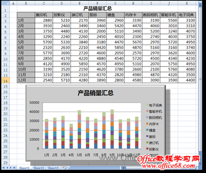 1)以全部产品销量统计结果所在的单元格区域为图表数据源创建图表,并对其进行适当地格式化,如2所示。