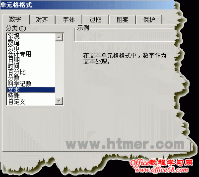 ②选择菜栏中的“格式→单元格→数字→分类→文本→确定”,即把数据区域设置为文本格式