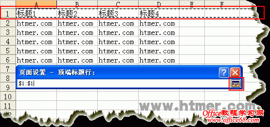 4、此时会自动切换到Excel工作表,并且会出现一个浮动的状态条。用鼠标选中你要重复打印的标题行,然后点击浮动状态条右边的红色小按钮,确定即可,相关截图如下所示: