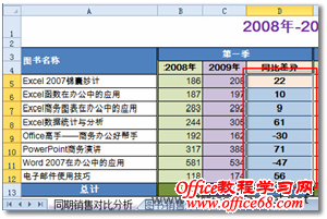 销售经理小刘,需要对比2008年和2009年各季度的产品销售差异,当他将计算后的差异数据填写在Excel数据表中时,发现这些普通的数字,太过乏味,容易引起视觉疲劳。有什么更好的方法能够让乏味的差异数字直观显示,并容易理解呢?