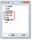 图1 插入切片器按钮 2. 在随即打开的“插入切片器”对话框中,根据实际需要,选中某几个字段前的复选框,如图书名称、图书作者和地区,如图2所示。
