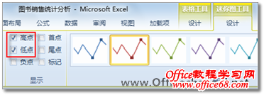 3. 在“显示”选项组中单击选中“高点”和“低点”复选框,以便在图表中突出显示最高值和最低值,如7所示。