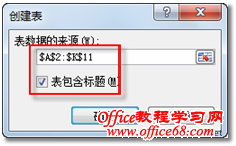 图2 选择合适的表格样式 3. 此时,将会打开“创建表”对话框,在“表数据的来源”文本框中输入数据范围,或者直接在工作表中拖拽鼠标选择数据范围,并选中“表包含标题”复选框,如图3所示。