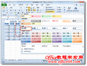 精美的报表会给人带来更大的视觉冲击,小刘是一个稍欠美感的人,他进行了很多尝试,结果还是觉得表格的样式与标题文字不协调。Excel 2010内置的单元格样式,可以帮助他解决问题。 创建完美的标题样式 Excel 2010内置了精美的表格样式,只需将其应用到表格中,就可以轻松制作出令人意想不到的表格效果。 1. 在“开始”选项卡的“样式”选项组中,单击【套用表格格式】按钮,如图1所示。