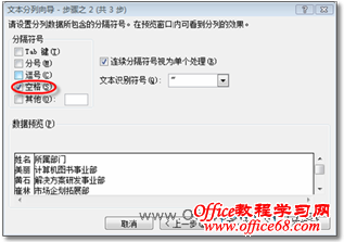 图4 “文本分列向导- 步骤之2(共3步)”对话框 |