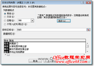 图5 “文本分列向导- 步骤之3(共3步)”对话框 (6)单击【完成】按钮即可完成文本的分列设置,最终效果如图6所示。