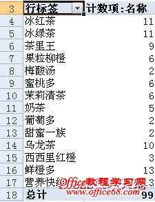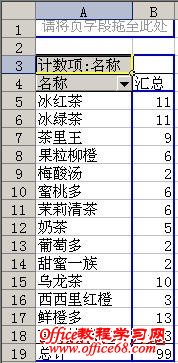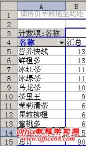 3.再次单击“名称”字段,将其拖至“请将数据项拖至此处”。这时数据透视表变成如图所示: