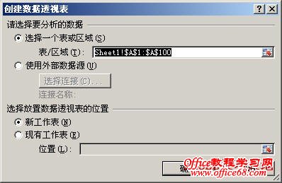 1.选择A1:A100区域中的任一单元格,单击菜单“数据→数据透视表和数据透视图”,在弹出的对话框中单击“完成”按钮。这时Excel将在一个新建的工作表中建立空的数据透视表。