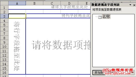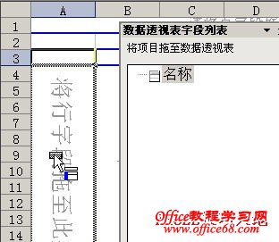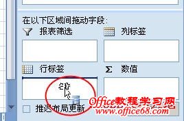 3.将光标放到“名称”字段上,光标变成黑色四向箭头形状,单击鼠标左键将“名称”字段拖动到“行标签”下方区域中。
