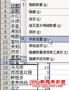 4.选择任一名称,鼠标右击,在弹出的快捷菜单中选择“字段设置”。