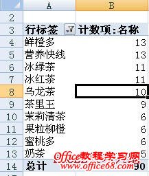 如果在Excel工作表的某一列中有大量文本数据,现在需要找出其中出现次数最多的10种数据,除了使用公式的方法(见本站《用数组公式找出一列中出现次数最多和最少的数据》一文),还可以使用数据透视表,也非常方便。