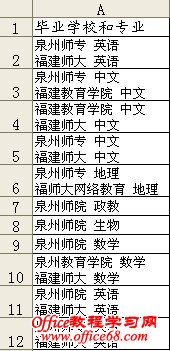 今天在处理教师信息表时遇到一个问题,就是要把Excel同一单元格中的两行数据进行分离,变成两列数据,当然,这其中有的单元格是只有一行。如图所示