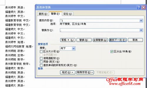2、我们先把表格转换为文字(这个大家都会吧!),再用word里的高级查找替换功能,把换行符转换为逗号,如图所示: